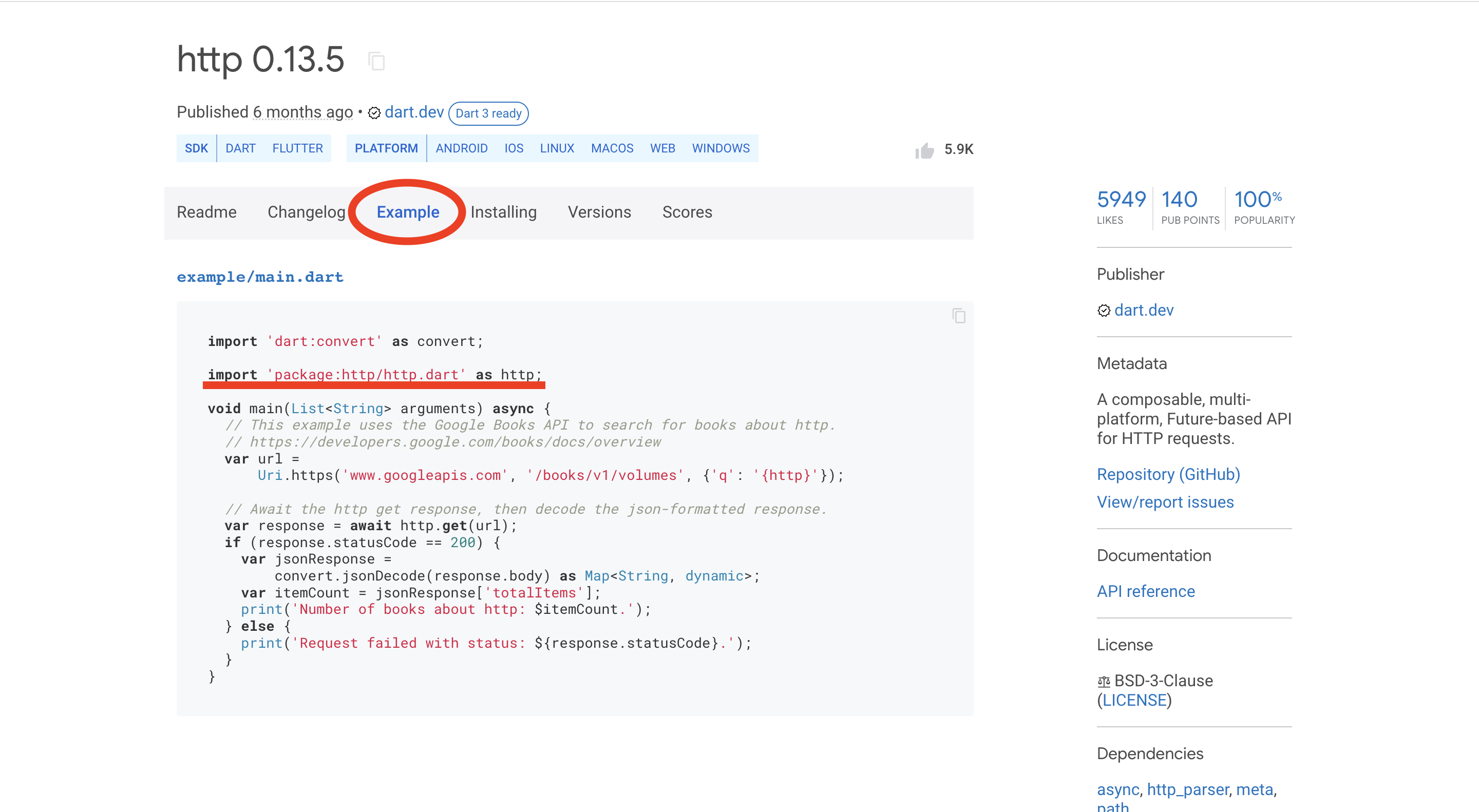 이를 위해 pub.dev 페이지에 접속할 것인데,